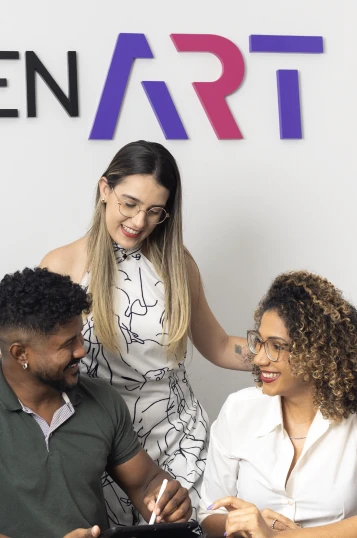 A frente de planejamento e posicionamento da Open Art atua com inteligência estratégica, conduzindo análises de mercado, estudos de público e diagnósticos de marca que orientam todo o processo criativo.